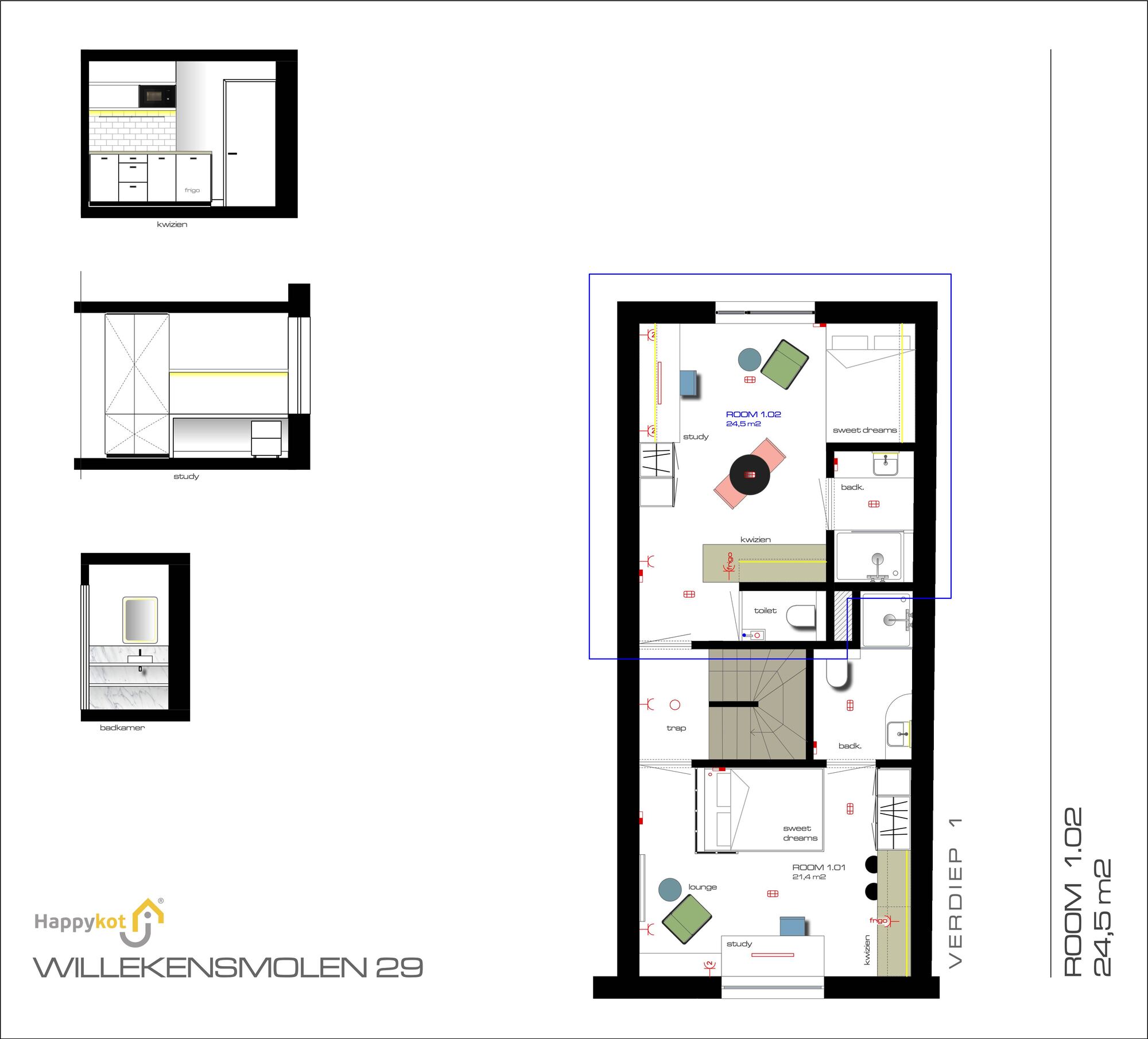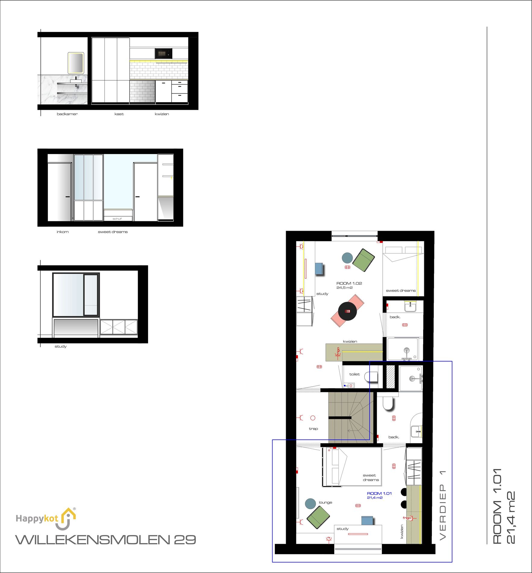 - Fully furnished - bed, wardrobe, desk, chair, bookcase